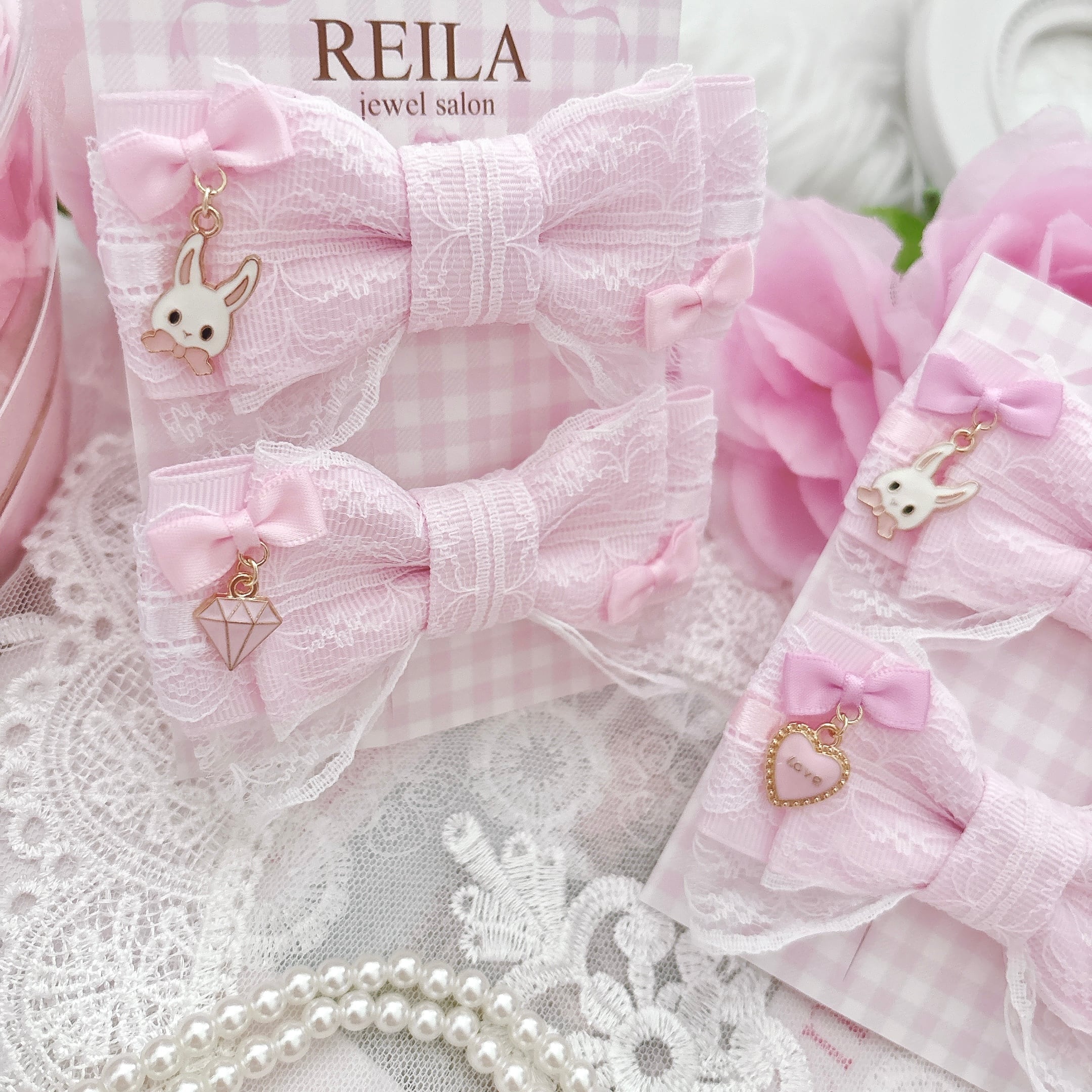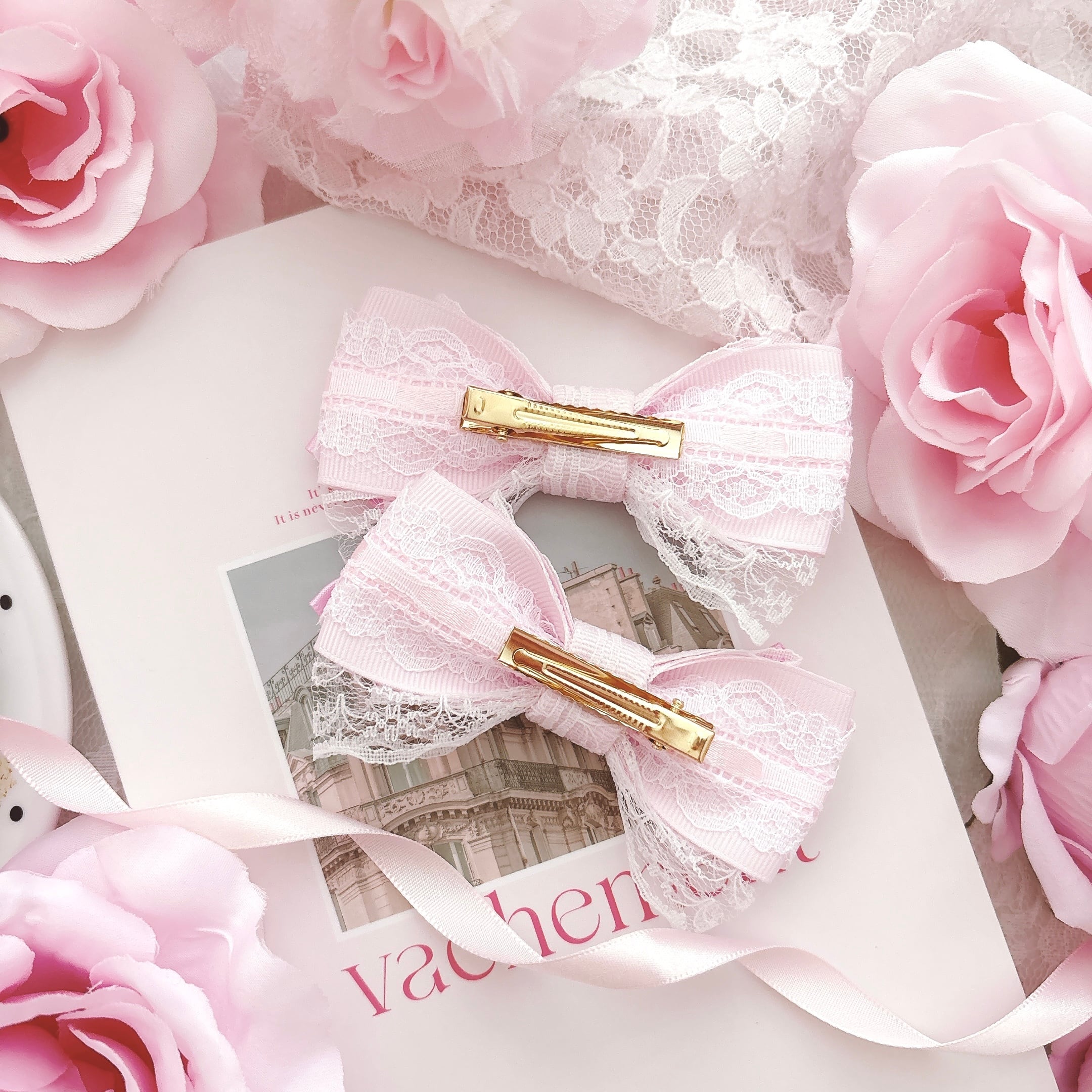 Baby pink twin ribbon♡ (Hairclip 2個)