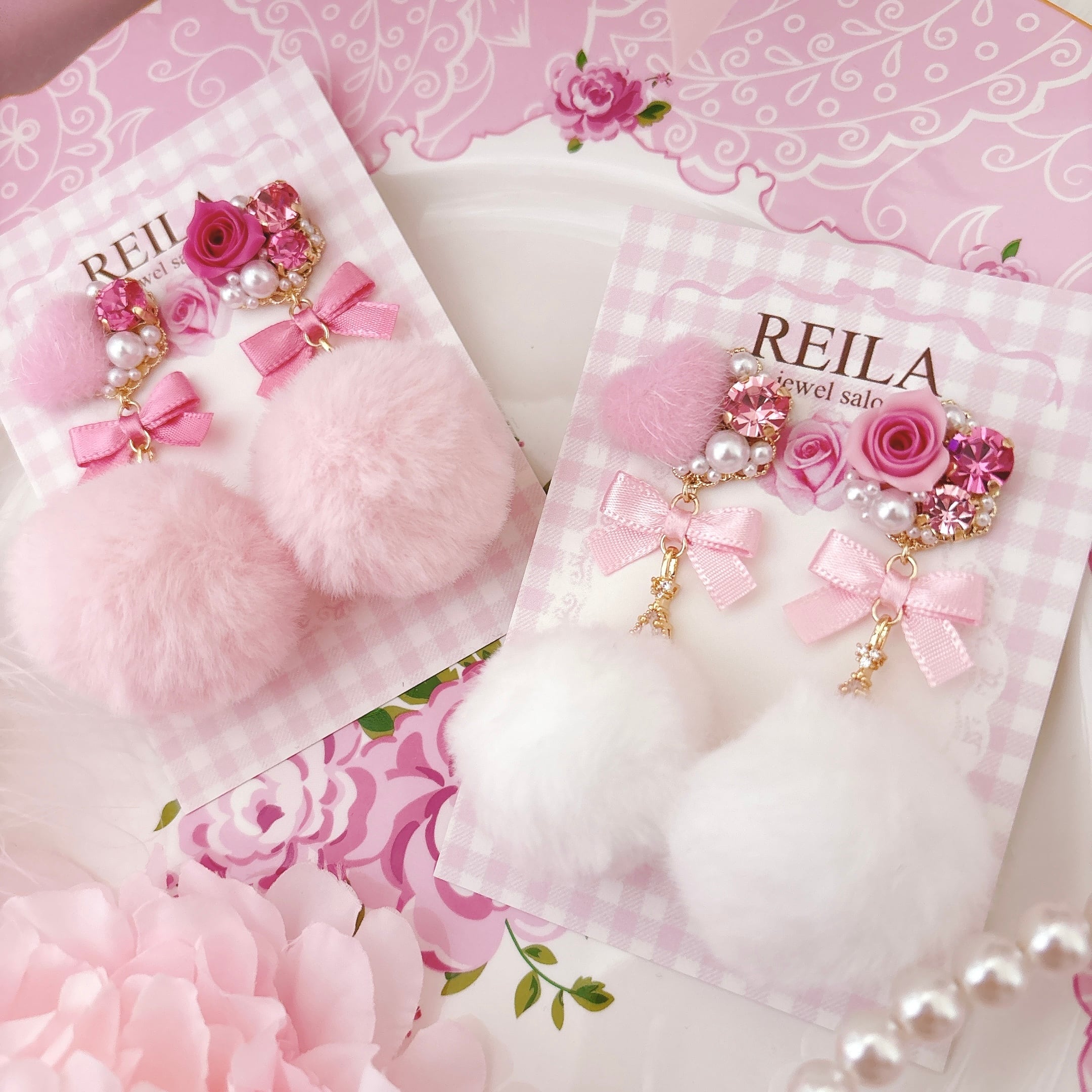 ビジューアクセサリーは世の中に沢山ございますが、その中でもREILAらしい姫系を表現したく、デコアクセサリーでもよく使うローズピンク・ライトピンクの正規PRECIOSAを合わせ、カラーごとに見合うおリボンを♡
